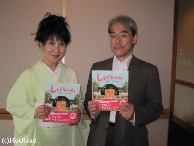 6月19日(日)富山 北日本新聞「まんまる女性倶楽部」トークショーにて、ロビーで絵本『しげちゃん』などを販売して下さった清明堂書店の丸田さん。